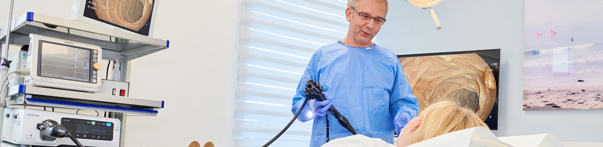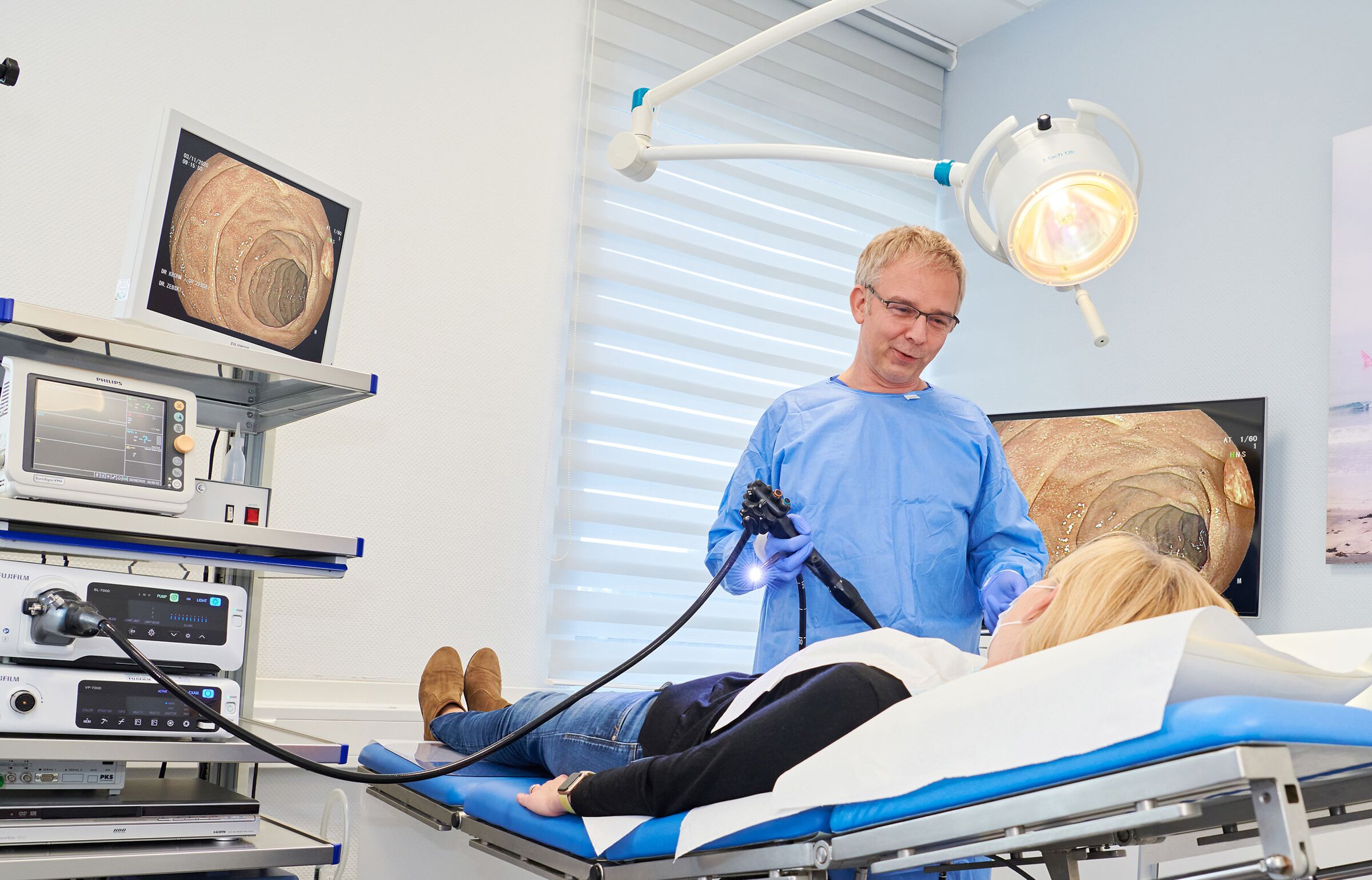 In der Regel wird Ihnen eine milde Kurznarkose, eine sogenannte Sedierung, angeboten, häufig als „Schlafspritze“ bezeichnet. Dadurch wird der Schutzreflex, den man als Würgereiz wahrnimmt, wirksam abgefangen, so dass Sie die Untersuchung tatsächlich „verschlafen“.